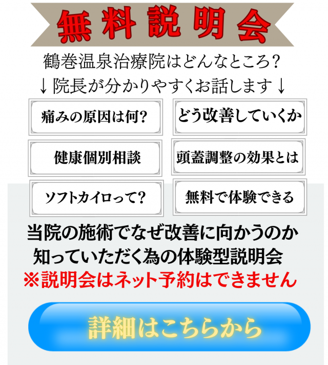 なので筋肉をほぐしても筋肉に原因が無い為、一時的な施術になります。