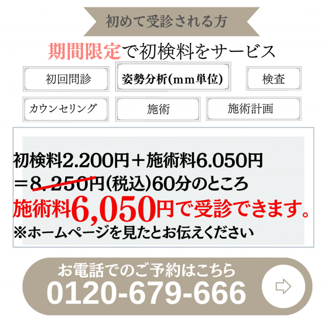 身体に負担をかけない短時間で高度かつ、安全な手技でアジャストメント(矯正)をしていきますので、その費用対効果を長時間身体に負担をかけるマッサージと比較されても、根本的に違うのです。