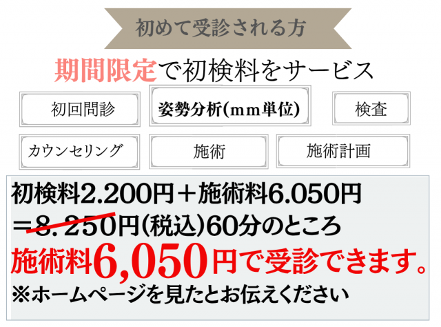 初めから伝えてくれる所は少ないので重症の方に合わせお話しますと、、不定期来院やひと月判断は難しく、本当の効果は2ヶ月目以降にかかっています。完全予約の施術計画を立てしっかり通院し、施術効果維持の運動療法を自宅で行っていただく事でよい姿勢が定着し、改善に向かいます。