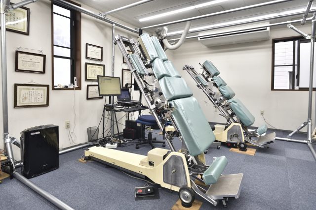 頭・胸・腰・骨盤各部が独立。受者体重を利用したニュートン原理。ボキボキせず負担を少なく背骨や骨盤を安全・本格的に矯正します。