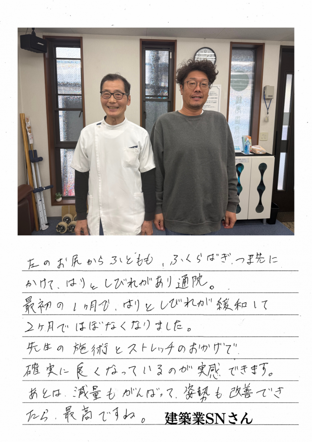 今まで多くの脊柱管狭窄症、坐骨神経痛の方も改善してまいりました。
